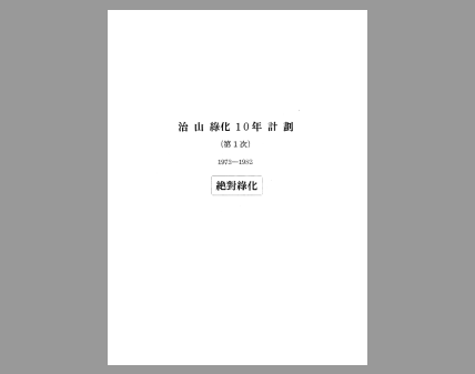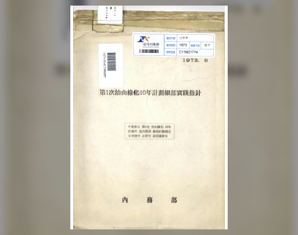 내무부는 제1차 계획 초안을 1973년 3월 10일 경찰력을 상징하는 내무부 치안국 상황실에서 공식 발표하였다.47 내무부 계획 부호 산림1호로, 『전 국토의 녹화』라는 목표 밑에 총 31개 중점시책을 두었다. 농촌연료 대책, 선식후벌제(先植後伐制)의 확립, 의무조림 강화, 사방녹화 등 산림녹화와 직접 연결된 시책부터 자연보호, 산림병해충, 산불방지, 입산 통제, 산지묘 정책, 목재수급 계획, 임업시험장의 업무 확대, 산림통계의 정비 등 산림녹화의 성공을 폭넓게 지원할 수 있는 시책까지 모두 사업 범위에 포함하였다.