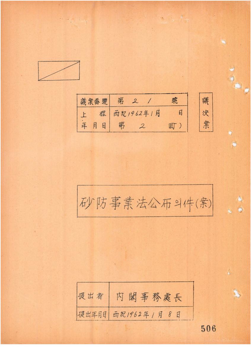 | 133 | 일반기록물 | 사방사업법 공포의 건 | 총무처 | 1962 |