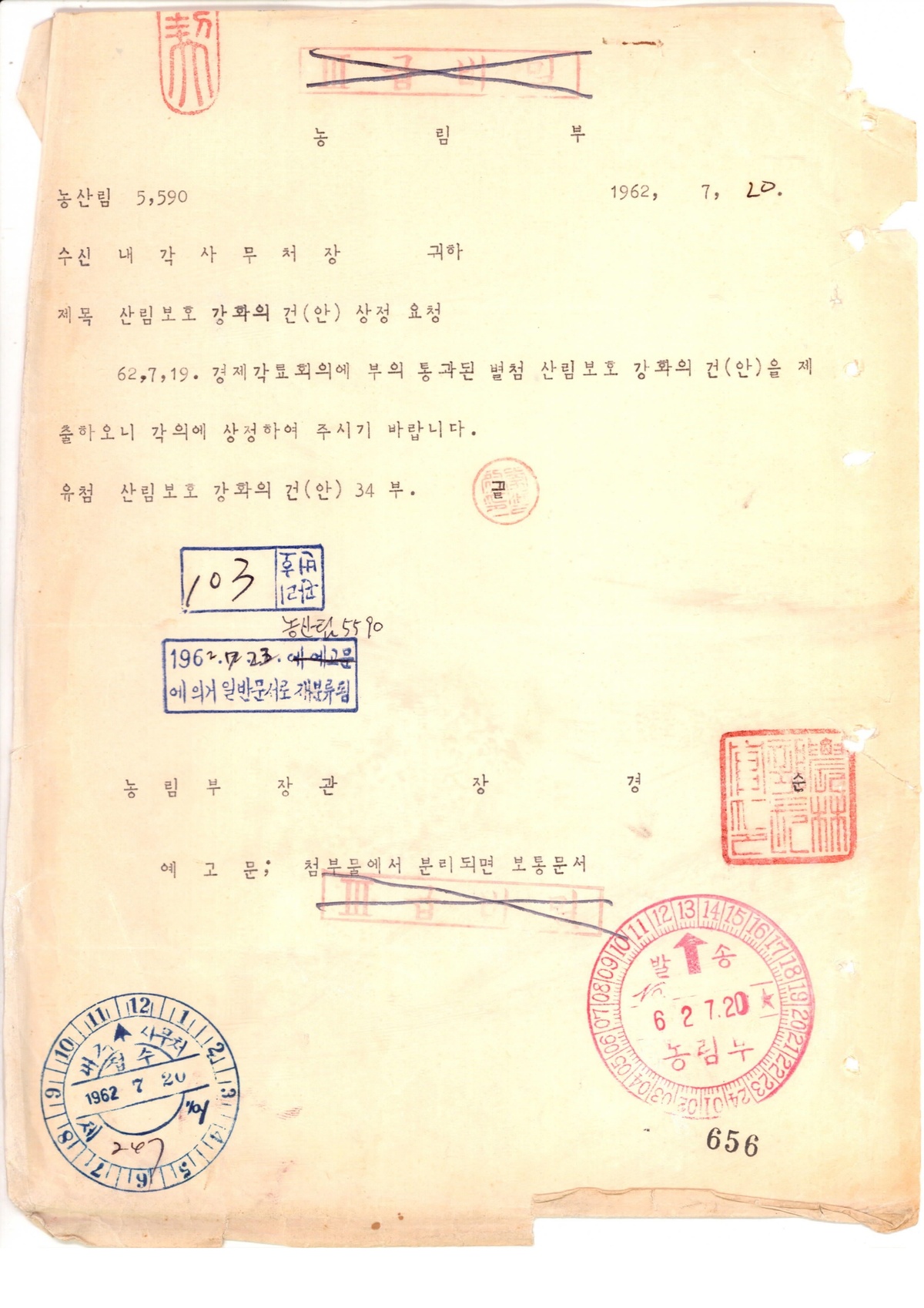 | 134 | 일반기록물 | 산림보호강화의건(제1329호) | 총무처 | 1962 |