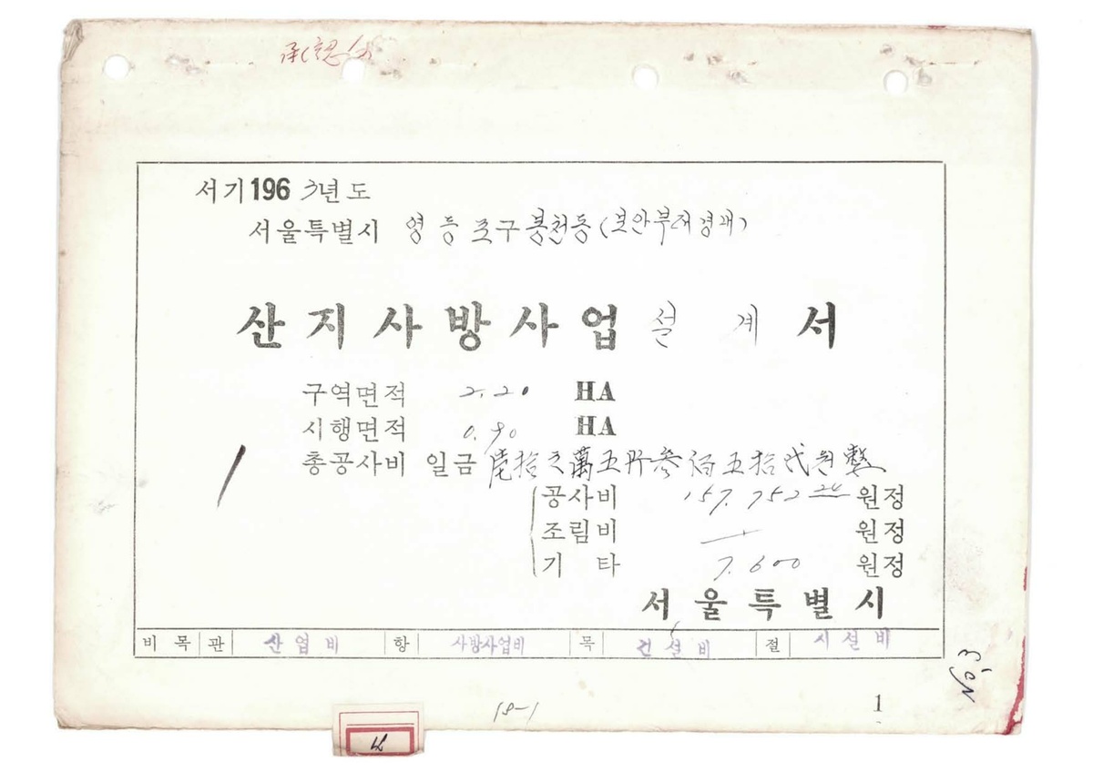 | 139 | 유관기관기록물 | 산지사방사업설계서(성동구응봉동구역) | 서울특별시 | 1963 |