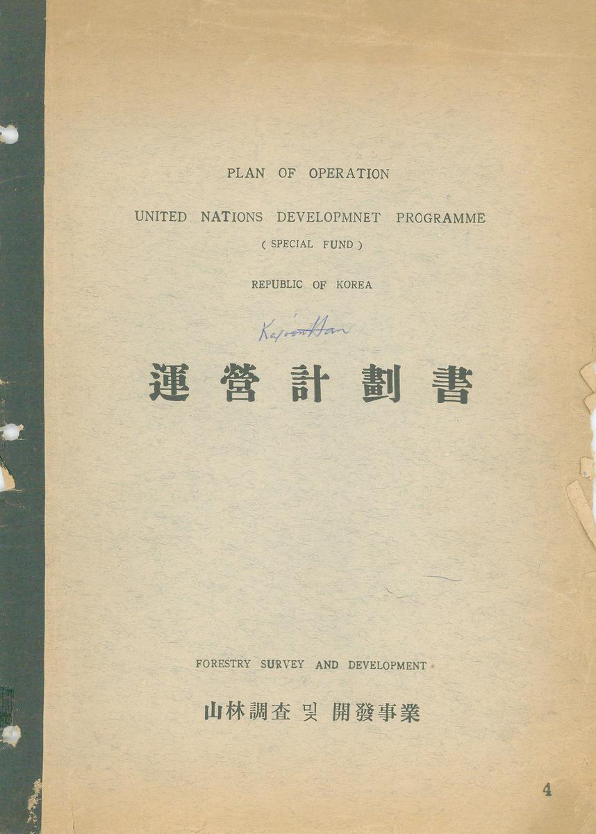 | 175 | 일반기록물 | PLAN OF OPERATION UNITED NATIONS DEVELOPMENT PROGRAMME(SPECIAL FUND) REPUBLIC OF KOREA. 운영계획서, 산림조사 및 개발사업 | 농촌진흥청 | 1964 |