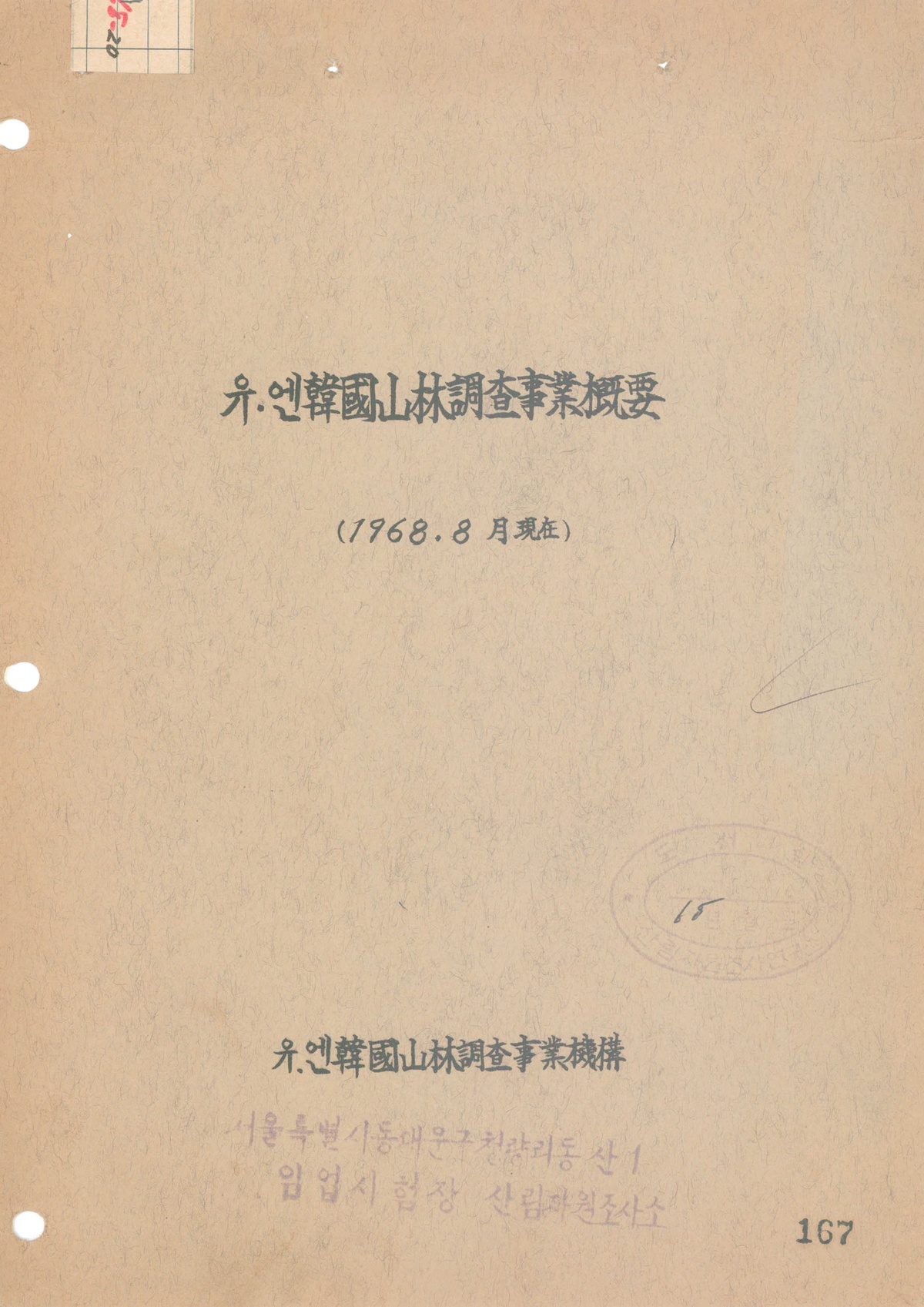 | 178 | 일반기록물 | 유엔 한국산림조사사업 개요(1968. 8월 현재), 유.엔한국산림조사사업기구 | 농촌진흥청 임업시험장 | 1964 | |