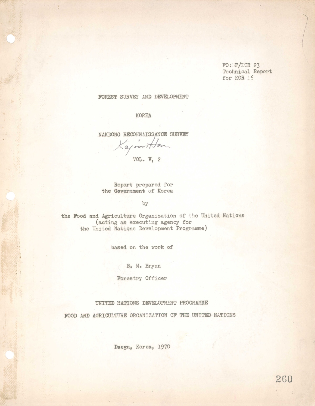 | 180 | 일반기록물 | FOREST SURVEY AND DEVELOPMENT KOREA NAKDONG RECONNAISSANCE SURVEY VOL. V,2(FO:SF/KOR 23 Technical Report for Kor 16), 1970 | 농촌진흥청 임업시험장 | 1964 |