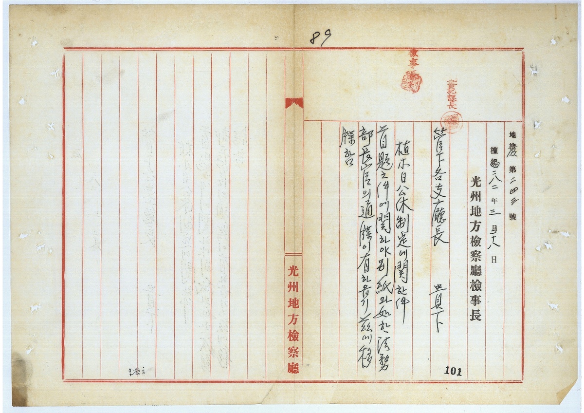 | 16 | 일반기록물 | 식목일공휴제정 | 대검찰청 | 1949 |