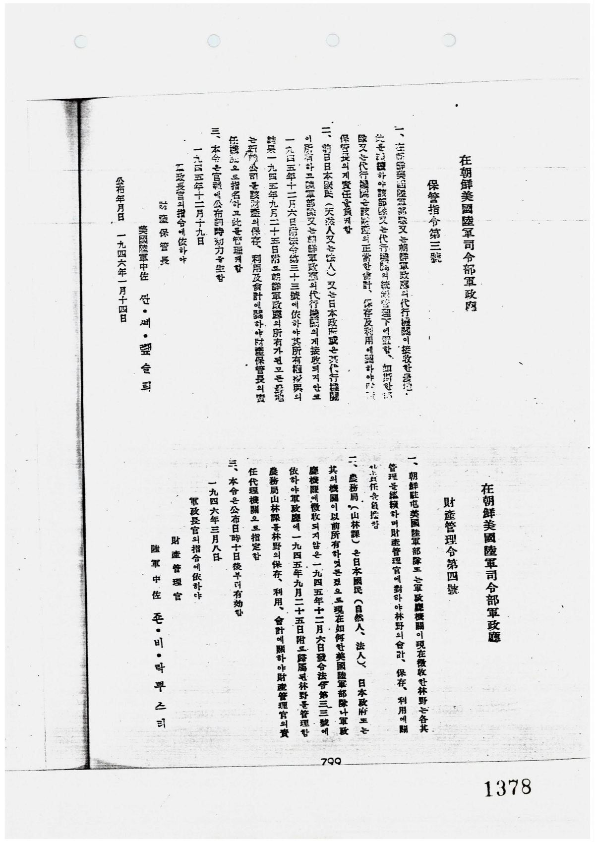 | 11 | 일반기록물 | 재조선미군육군사령부군정청 (관재령) | 미군정청 | 1946 |