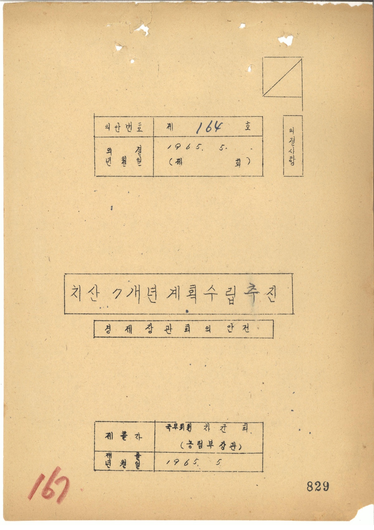 | 202 | 일반기록물 | 치산7개년계획 수립 추진 | 경제기획원 | 1965 |