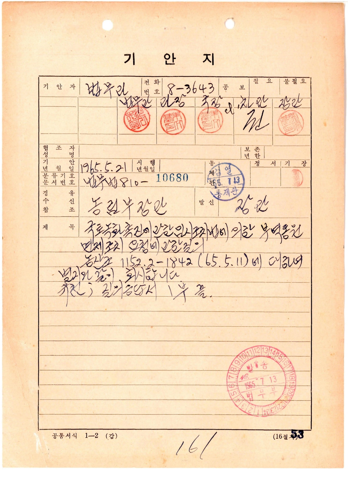 | 210 | 일반기록물 | 산림청 직제(안)(제100회) | 총무처 | 1966 |
