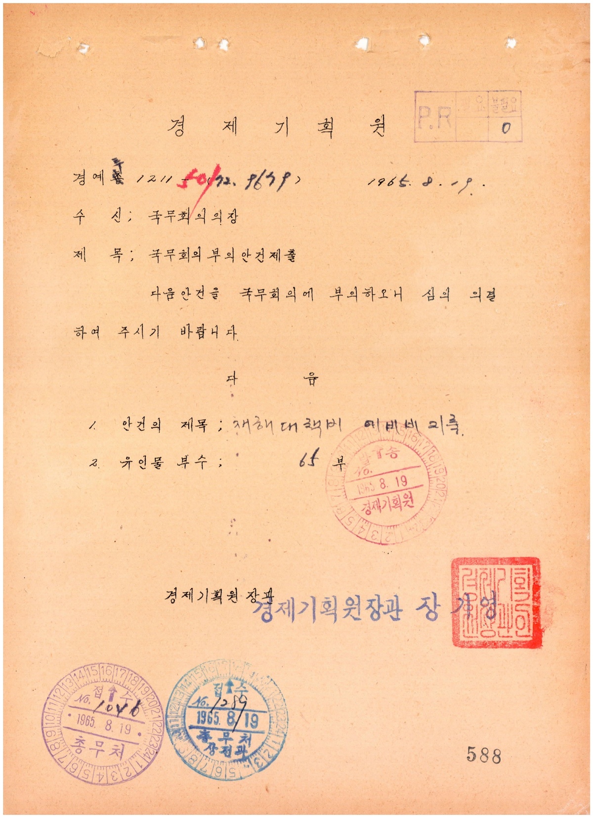 | 204 | 일반기록물 | 재해대책예비비지출(수해복구용 불도자 인수 및 연료림 조성)(제74회) | 총무처 | 1965 |