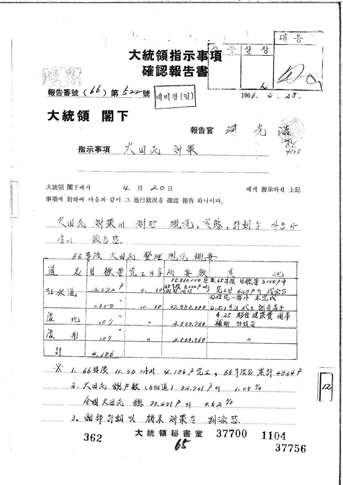 | 215 | 대통령기록물 | 화전민 대책 | 대통령비서실 | 1966 |