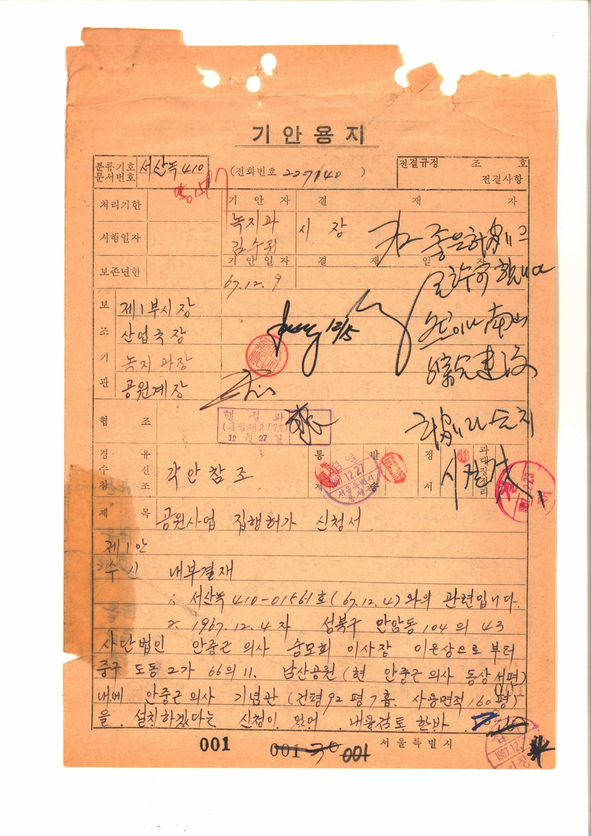 | 232 | 유관기관기록물 | 공원사업집행허가신청서 | 서울특별시 | 1967 |