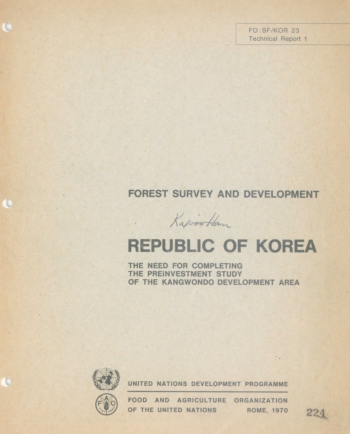 | 273 | 일반기록물 | THE NEED FOR COMPLETING THE PREINVESTMENT STUDY OF THE KANGWONDO AREA.(FO:SF/KOR 23). Technical Report 1. FAO. Rome. 1970 | 농촌진흥청 임업시험장 | 1970 |