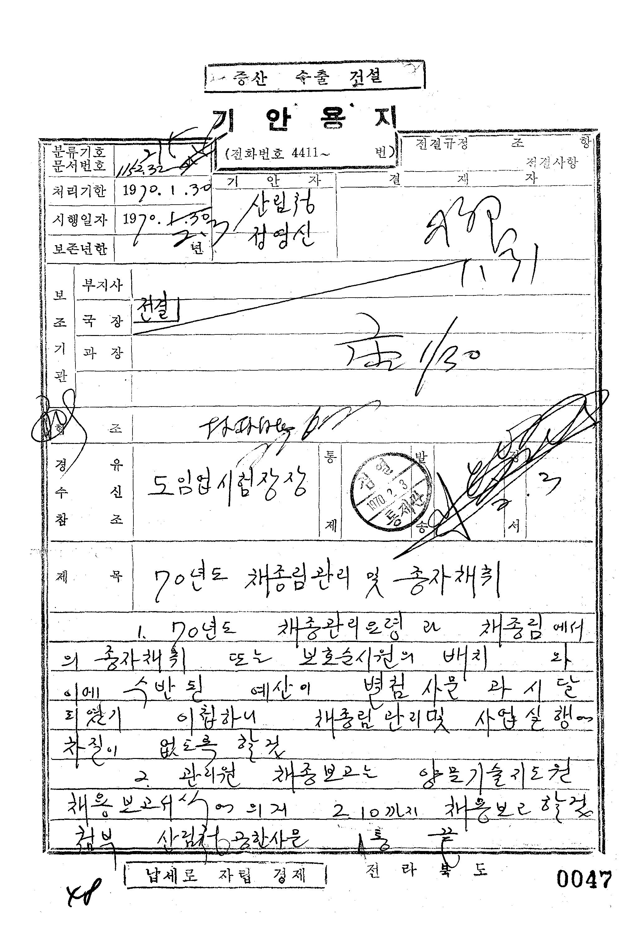 | 274 | 일반기록물 | 70년도 채종림 관리 및 종자 채취 | 전북특별자치도 | 1970 |