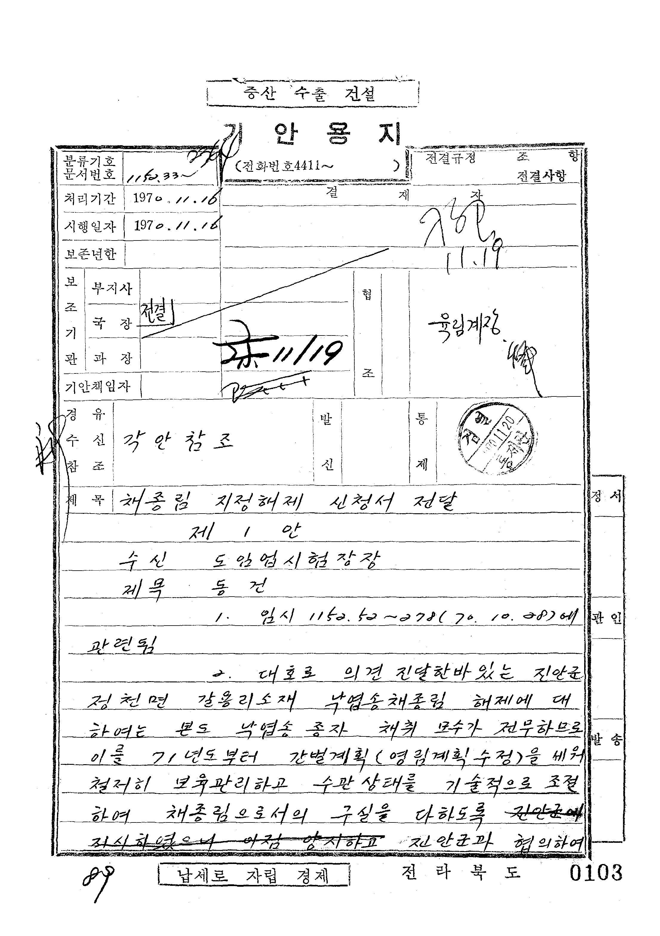 | 279 | 일반기록물 | 채종림 지정해제 신청서 | 전북특별자치도 | 1970 |