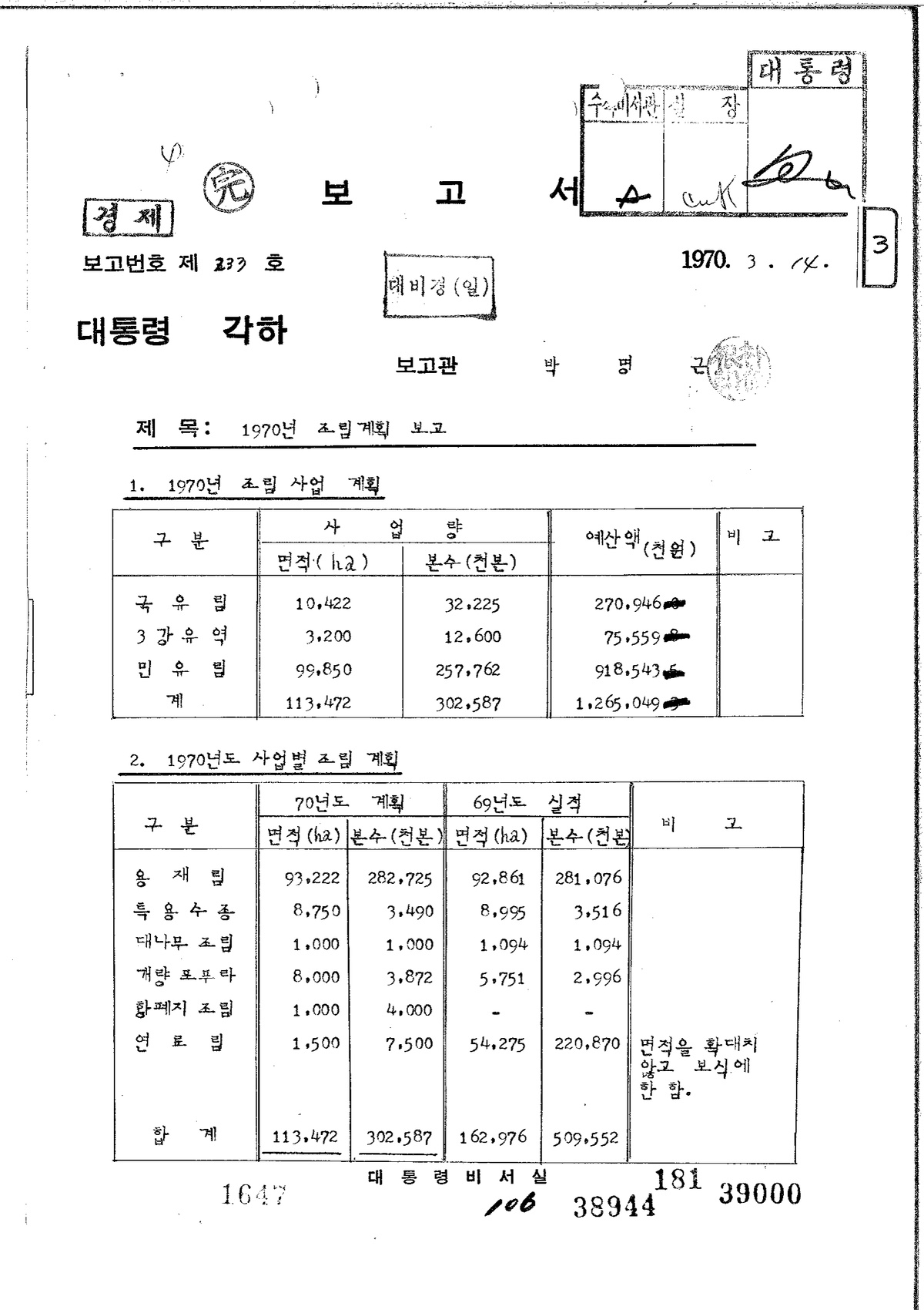 | 280 | 대통령기록물 | 1970년 조림계획 보고 | 대통령비서실 | 1970 |