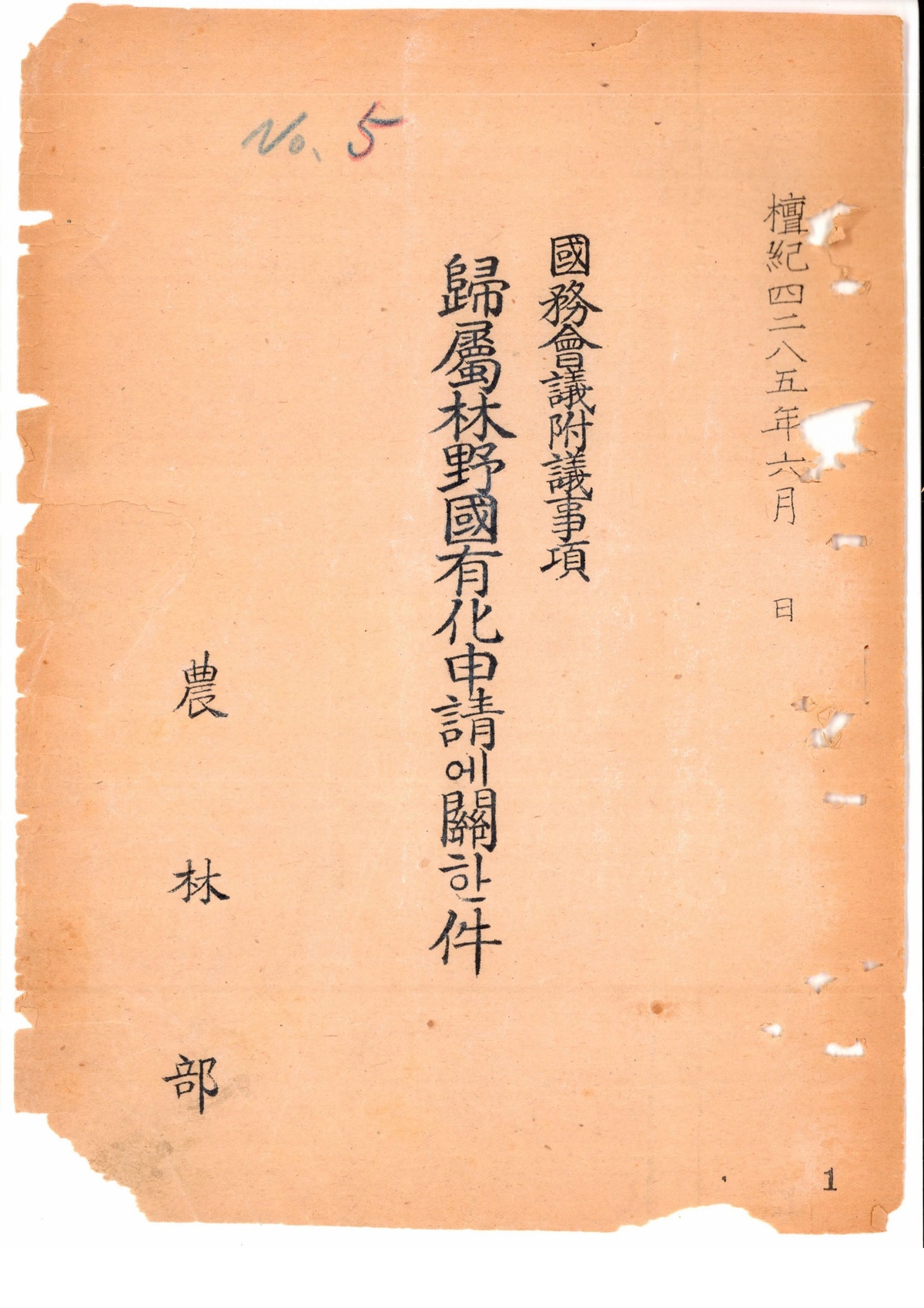 | 30 | 일반기록물 | 귀속임야 국유화 신청에 관한 건 | 총무처 | 1952 |