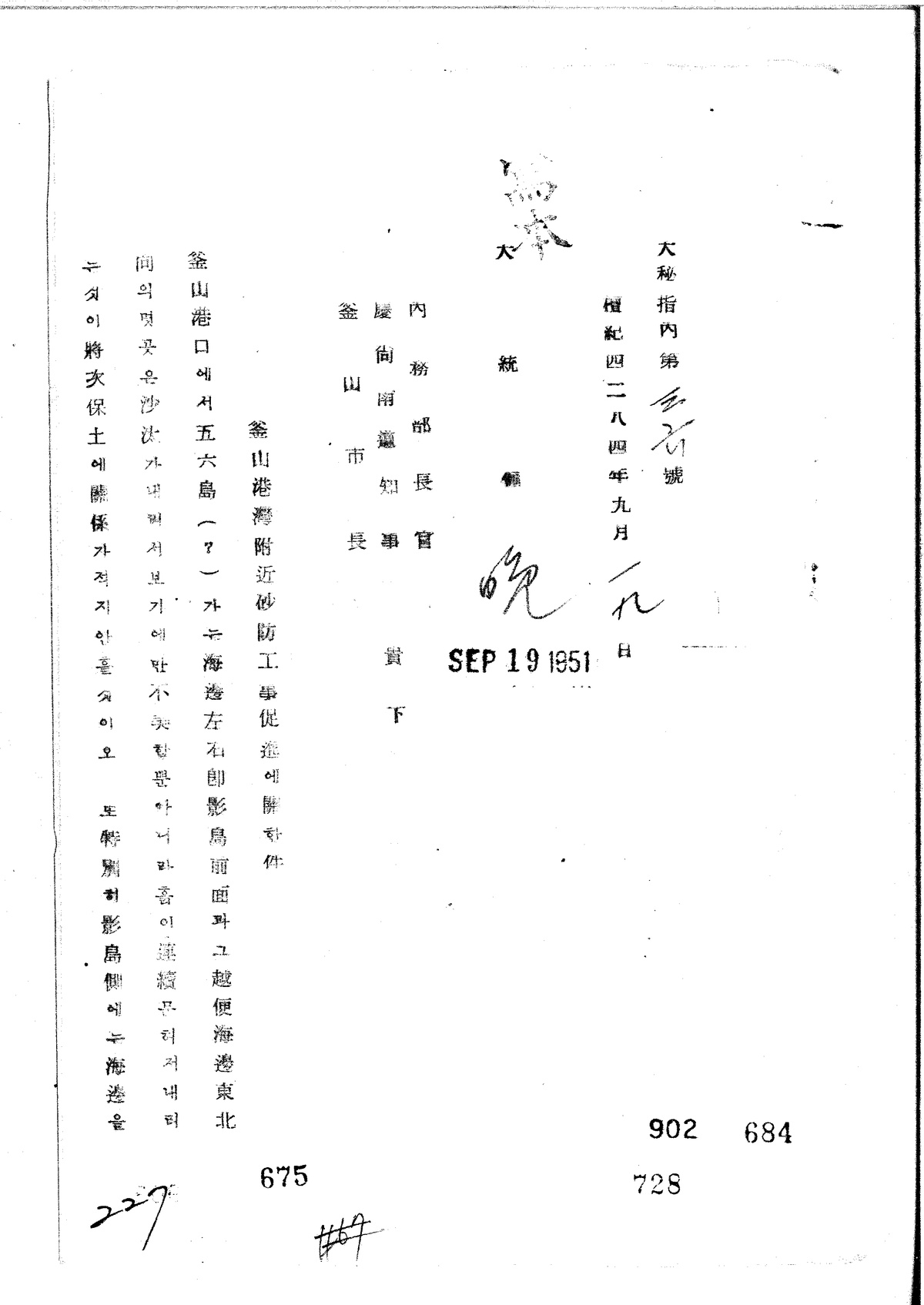 | 24 | 대통령기록물 | 부산항만 부근 사방공사 촉진에 관한 건 | 대통령비서실 | 1951 |