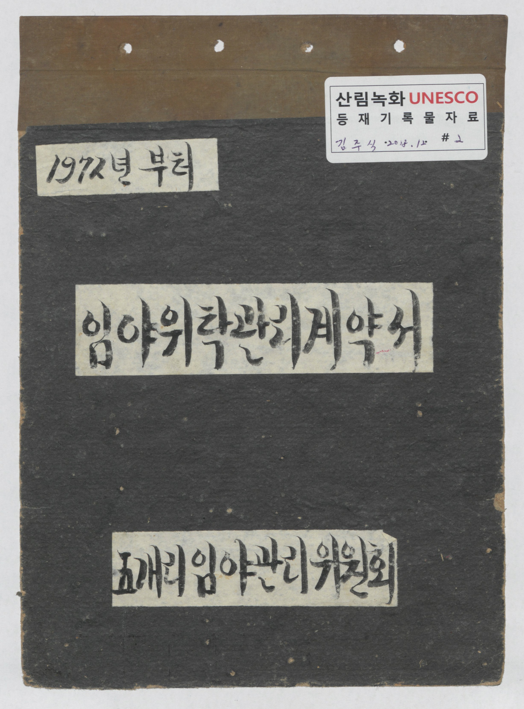 | 296 | 민간기록물 | 임야위탁관리계약서_오개리임야관리위원회(1972) | 五개리 임야관리위원회 | 1972 |