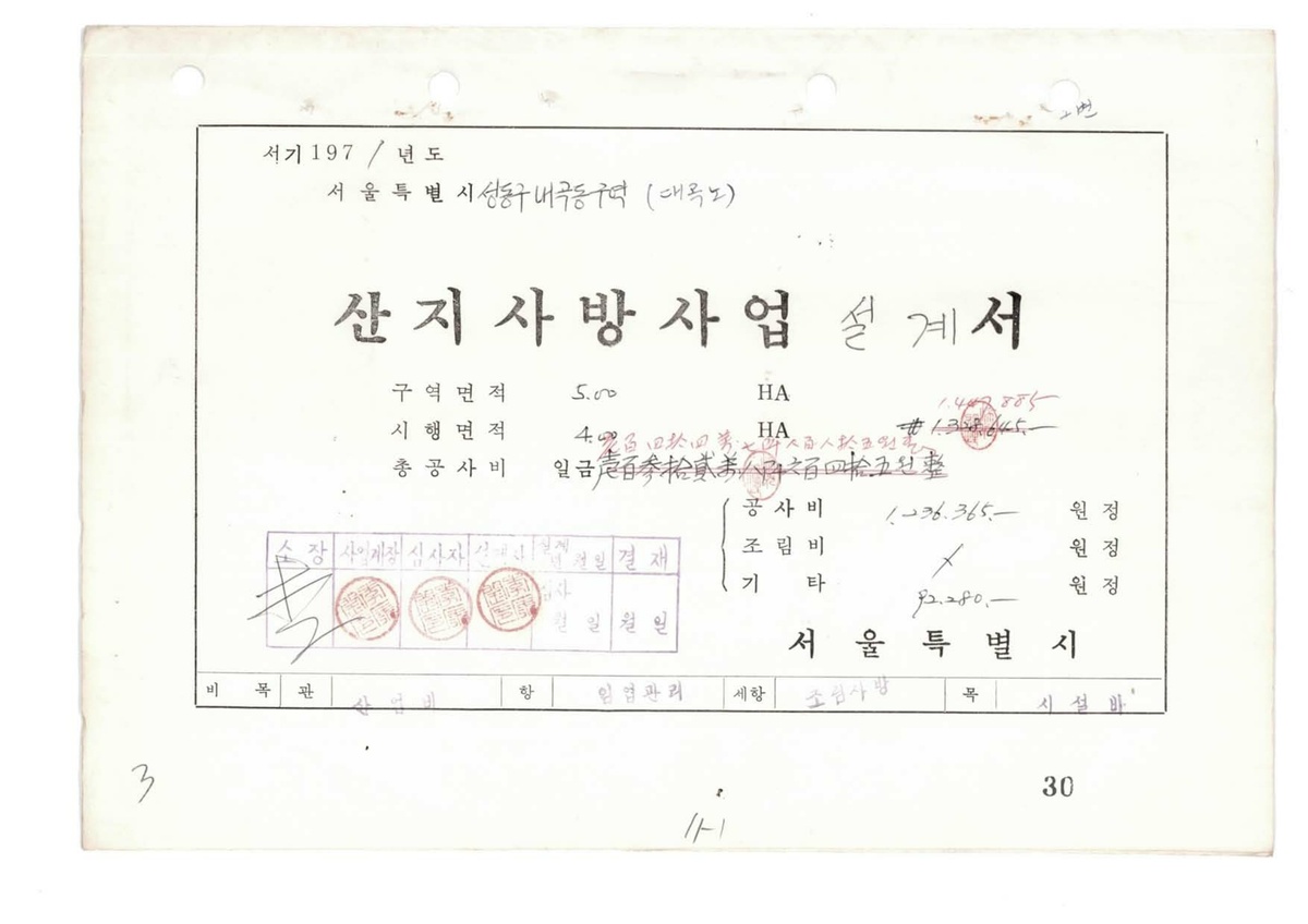 | 294 | 유관기관기록물 | 산지사방사업설계서(성동구내곡동구역(대곡로)) | 서울특별시 | 1971 |