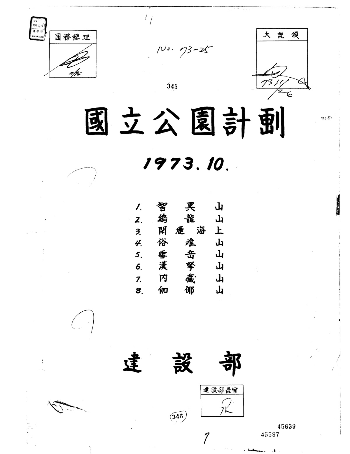 | 354 | 대통령기록물 | 국립공원 계획 | 대통령비서실 | 1973 |