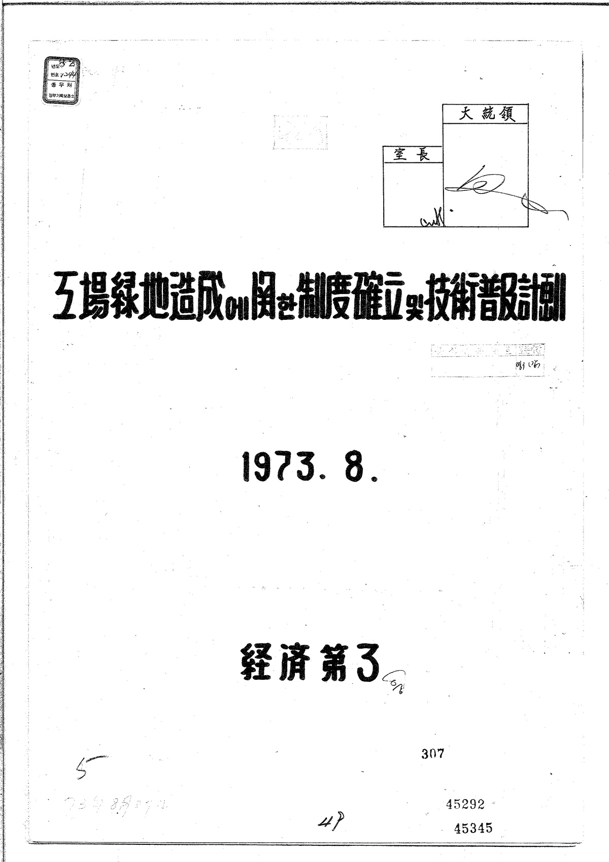 | 356 | 대통령기록물 | 공장녹지 조성에 관한 제도확립 및 기술보급 계획 | 대통령비서실 | 1973 |