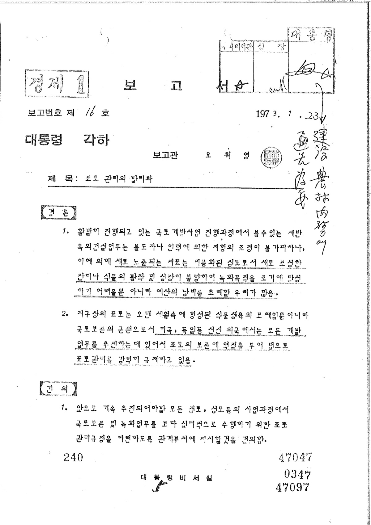 | 358 | 대통령기록물 | 표토 관리의 합리화 | 대통령비서실 | 1973 |