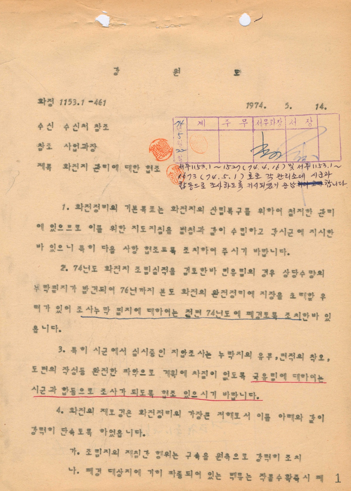 | 390 | 일반기록물 | 화전지 관리에 대한 협조 | 산림청 | 1974 |