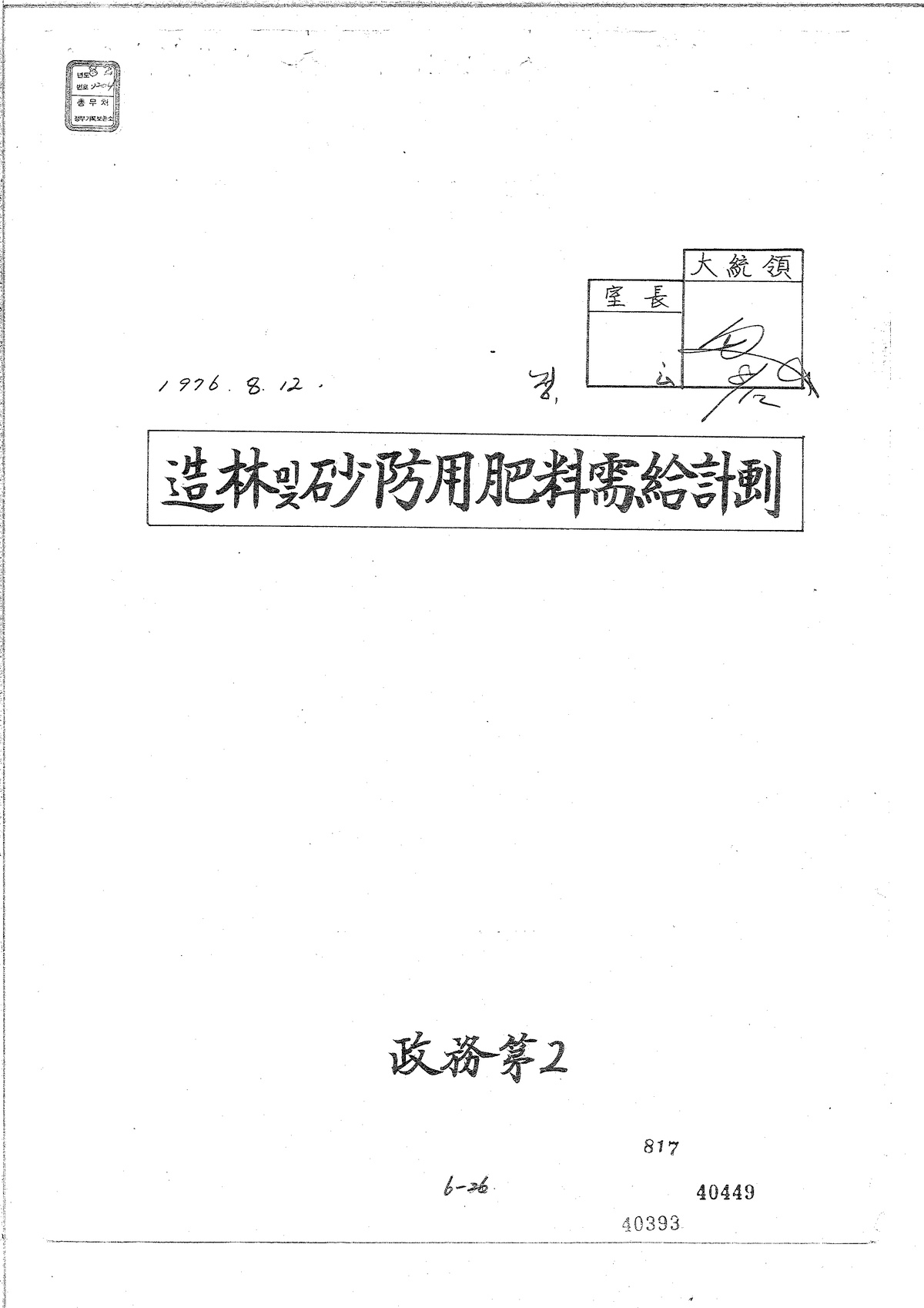 | 478 | 대통령기록물 | 조림 및 사방용비료 수급 계획 | 대통령비서실 | 1976 |
