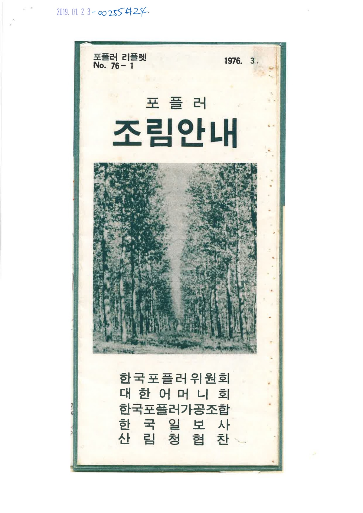 | 477 | 민간기록물 | 포플러 조림안내 리플렛_한국포플러위원회 등(1976) | 산림청·대한어머니회장 등 | 1976 |
