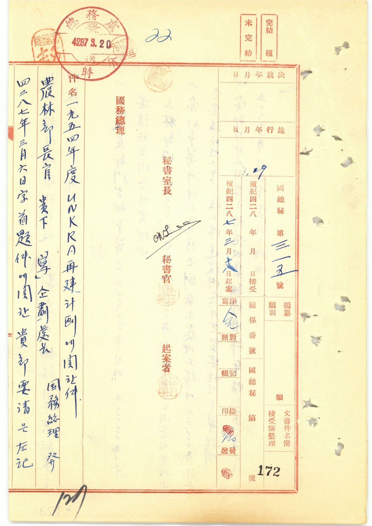 | 41 | 일반기록물 | 1954년도UNKRA재건계획에관한건 | 국무총리비서실 | 1954 |