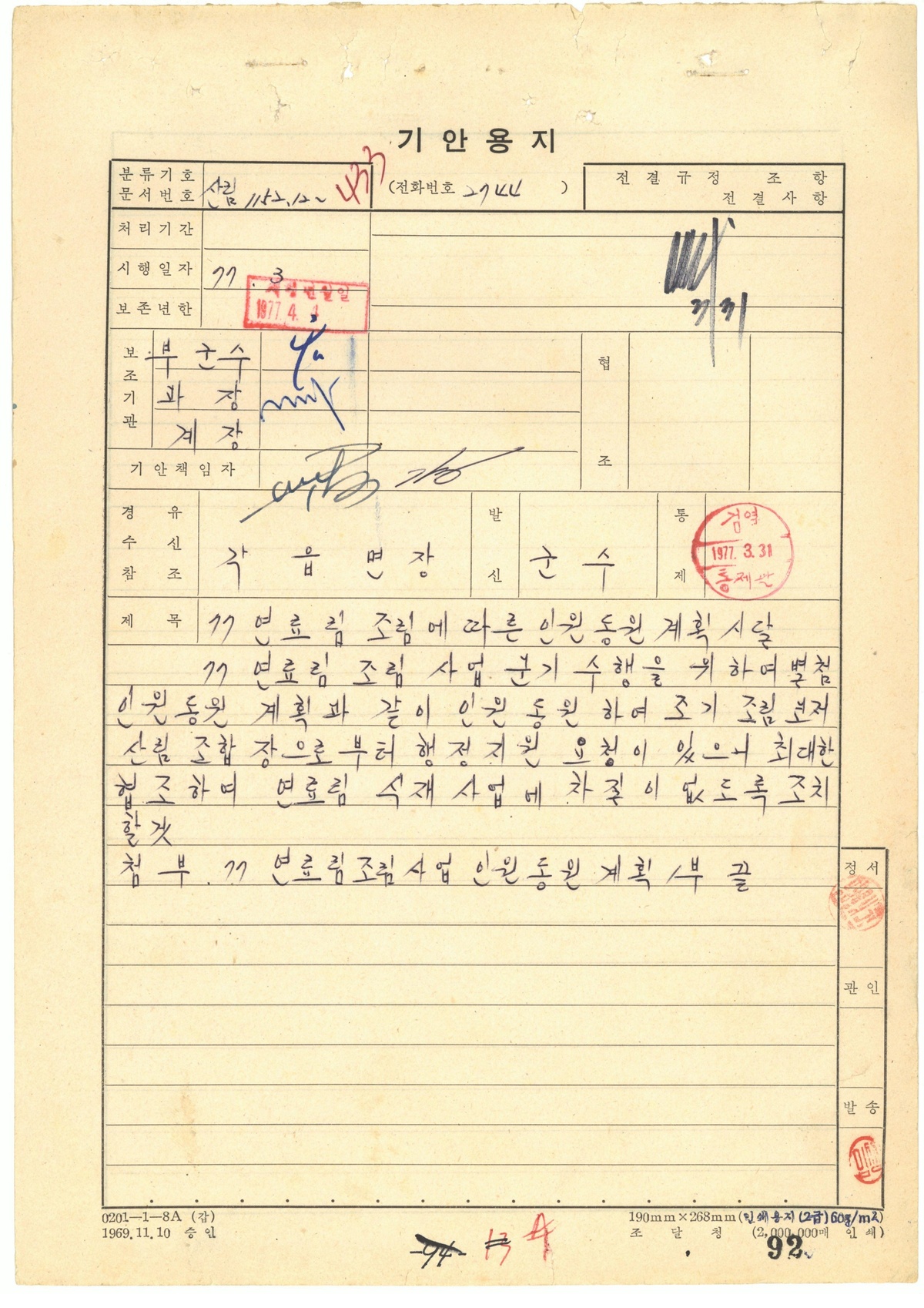 | 493 | 일반기록물 | 1977 연료림 조림에 따른 인원 동원 계획 시달 | 경기도 | 1977 |