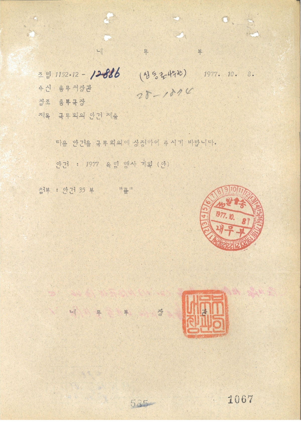 | 494 | 일반기록물 | 1977 육림행사 계획(안) | 총무처 | 1977 |