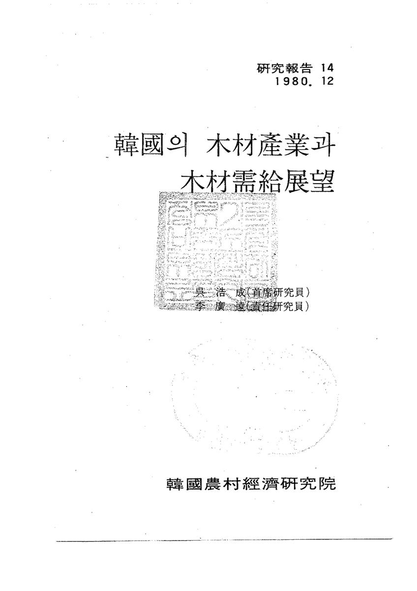 | 528 | 정부간행물 | 한국의 목재산업과 목재수급전망 | 한국농촌경제연구원 | 1980 |