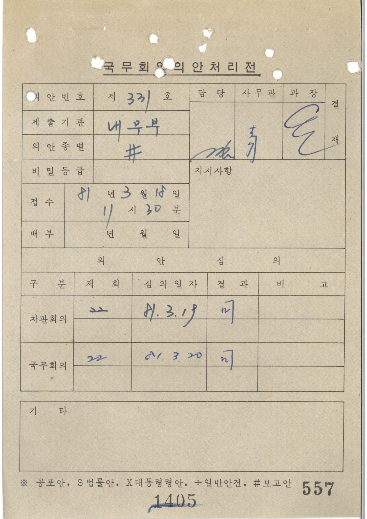 | 533 | 일반기록물 | 국유림 화전 농경지 매도자 관리 조서 | 산림청 | 1980 |