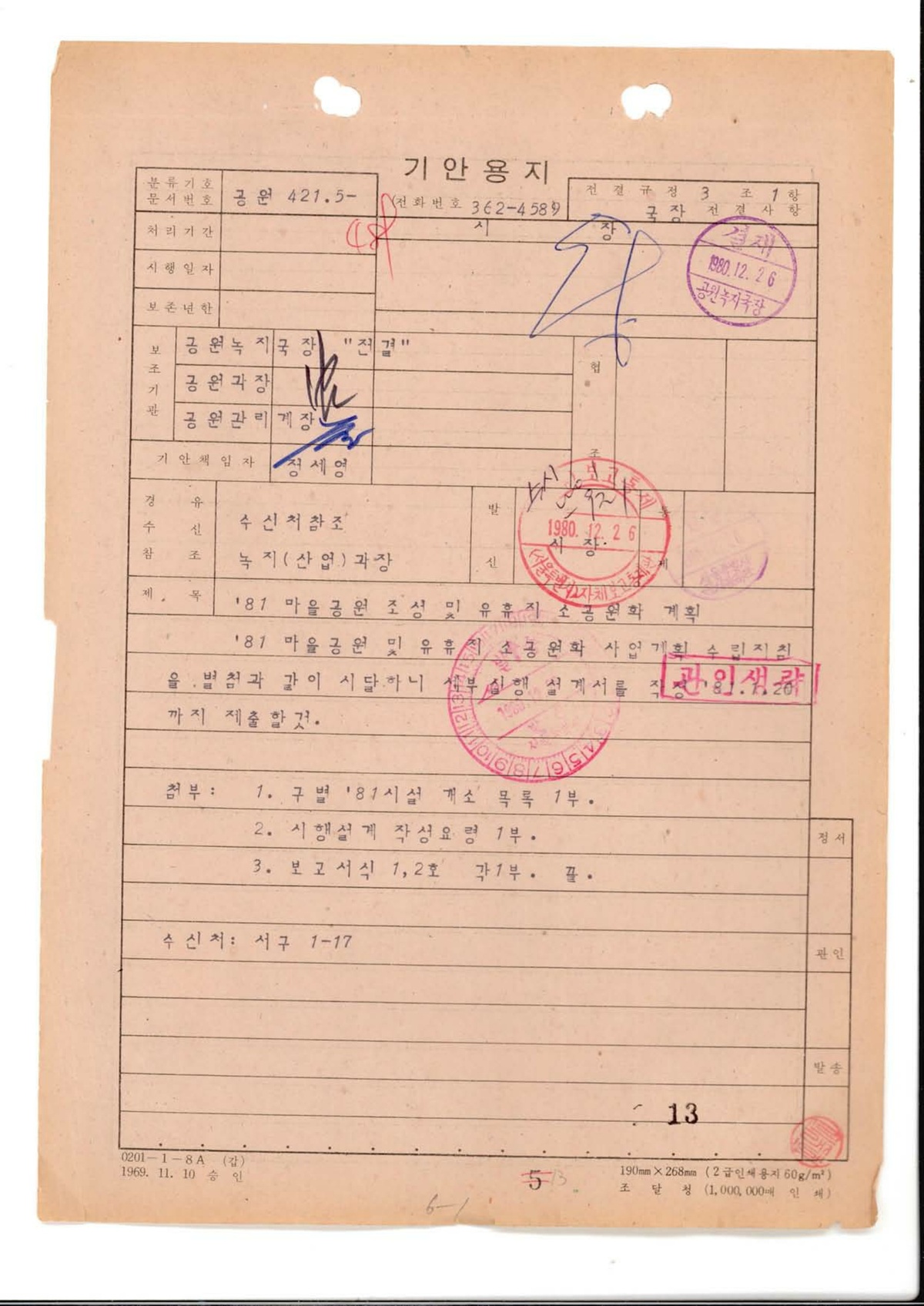 | 532 | 유관기관기록물 | 81마을공원조성및유휴지소공원화계획 | 서울특별시 | 1980 |