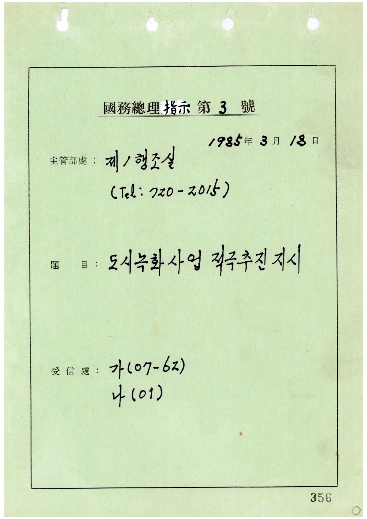 | 586 | 일반기록물 | 도시녹화사업 적극추진 지시 | 행정자치부 | 1985 |