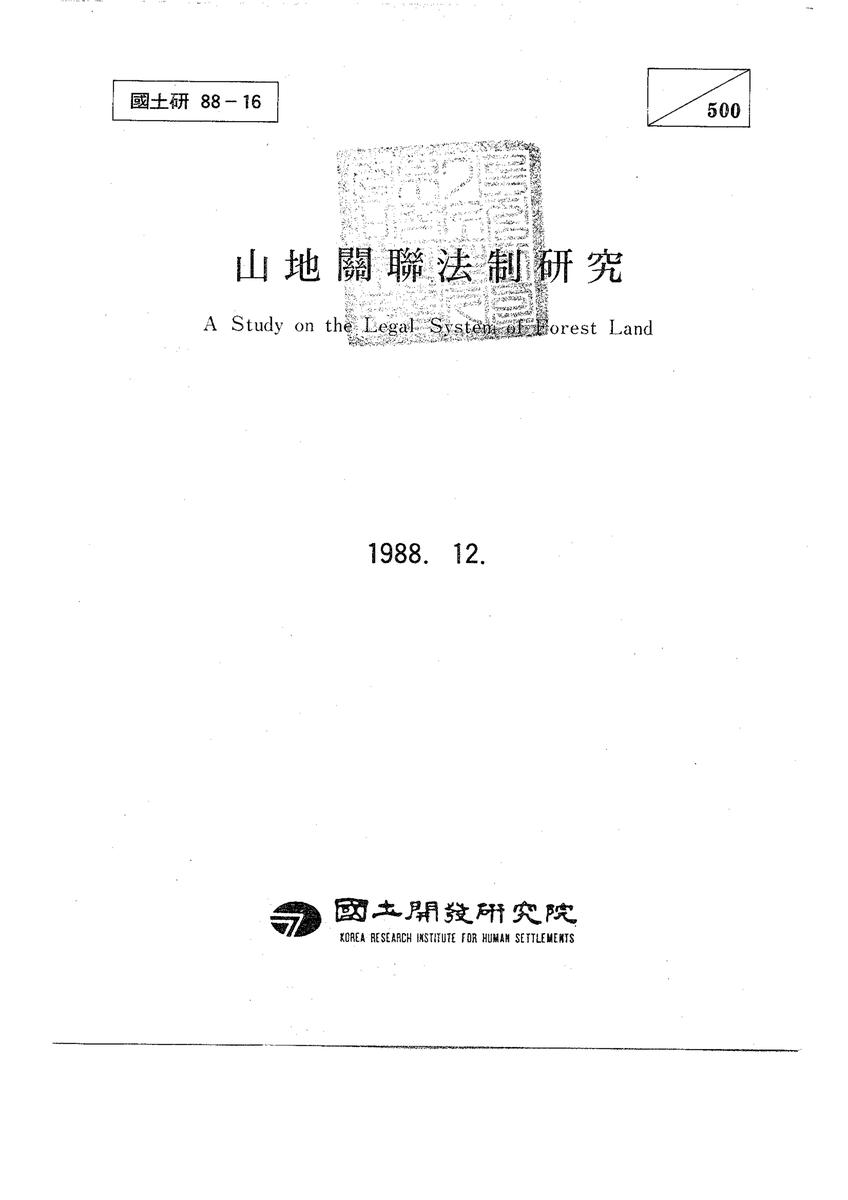 | 615 | 정부간행물 | 산지관련법제연구 | 국토개발연구원 | 1988 |