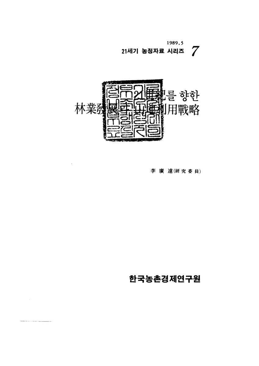 | 617 | 정부간행물 | 21세기를 향한 임업발전과 산지이용전략 1989.5 | 한국농촌경제연구원 | 1989 |