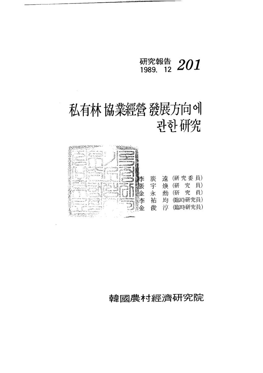 | 618 | 정부간행물 | 사유림 협업경영 발전방향에 관한 연구 | 한국농촌경제연구원 | 1989 |