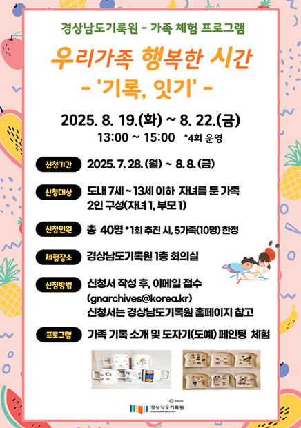 2019년부터 경상남도기록원은 기록에 대한 이용자의 관심도, 연령, 직업 등을 고려한 맞춤형 체험 프로그램을 기획하여 전 도민을 대상으로 운영하고 있다. 프로그램 기획 초기 단계에는 일부 이용자를 대상으로 하여 기록원을 알리고 기록문화를 활성화하는 데 한계가 있었다. 이에 프로그램의 만족도 조사와 설문조사 등을 통해 이용자의 다양한 의견을 수렴하고, 적극적으로 개선함으로써 이용자의 눈높이에 맞는 프로그램을 기획, 운영하기에 이르렀다. 프로그램과 연계한 다양한 기록 체험 활동도 병행하여 양질의 프로그램 개발을 위해 꾸준히 노력하고 있으며, 이용자들의 만족도도 함께 상승하는 추세이다. 앞으로도 다양한 연령층을 대상으로 맞춤형 프로그램의 경험을 제공하고, 기록문화의 발전을 위하여 최선의 노력을 할 것이다.