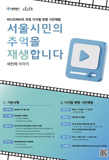 서울기록원은 시민의 추억이 담긴 비디오테이프를 디지털 파일로 변환해 무상으로 제공하는 ‘비디오테이프 디지털 변환 체험 서비스’를 운영하고 있다. 이 서비스는 서울 시민 누구나 참여할 수 있으며 비디오테이프와 변환한 파일을 담아갈 저장매체(USB, 외장하드 16GB 이상)를 서울기록원으로 가져오면, 디지털 변환 과정을 직접 확인하면서 과거의 추억을 디지털 파일로 받아볼 수 있다. 서비스 시작 이전에 서울기록원 누리집, SNS, 언론보도 등을 통해 적극적으로 홍보하여 많은 시민이 참여할 수 있도록 하였다. 이 서비스를 통해 서울기록원은 공공과 시민의 기록 자산을 풍부하게 하며, 서울의 과거·현재·미래를 잇는 기록문화 확산에 기여하기 위한 노력을 아끼지 않고 있다.