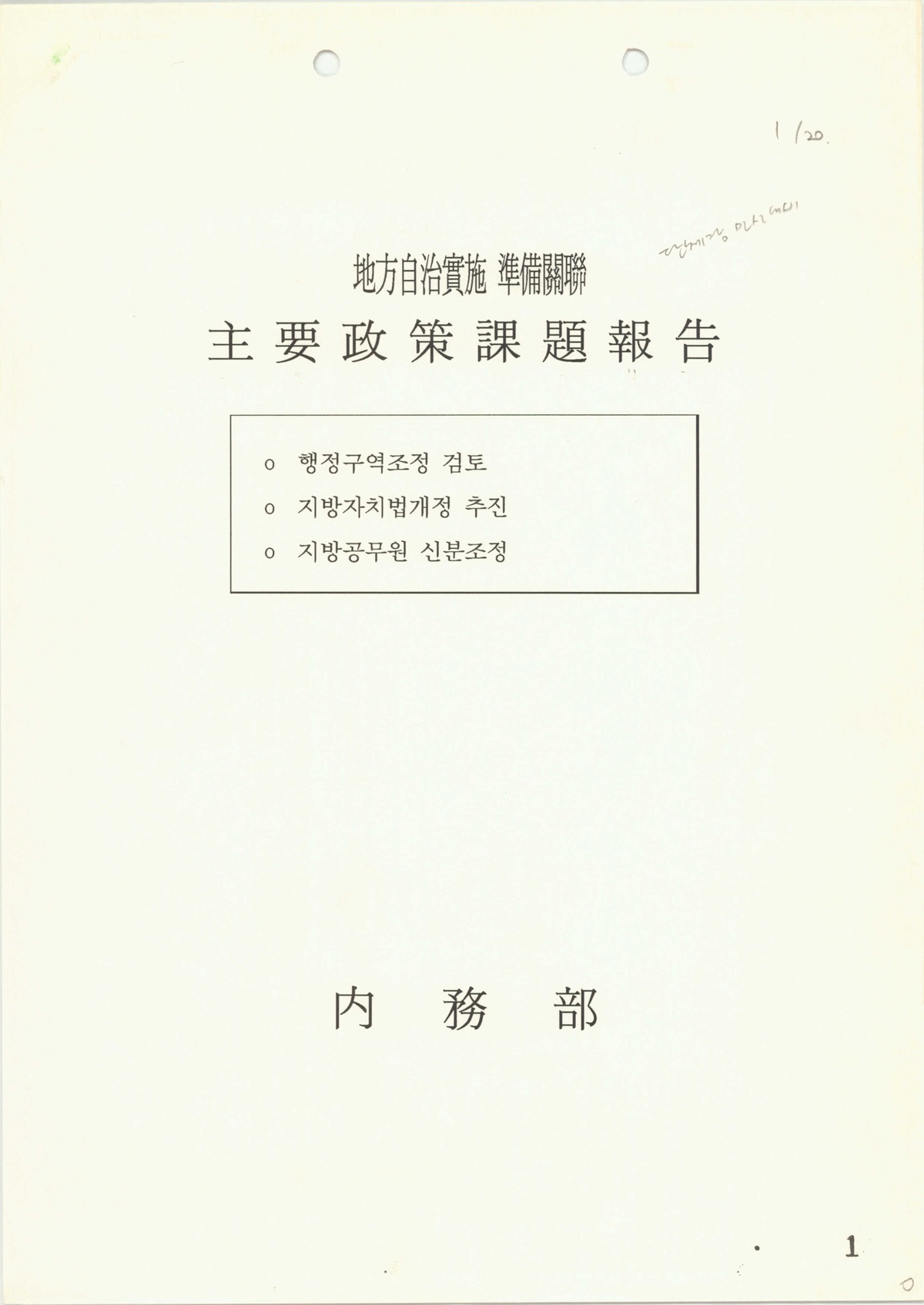 | 154 | 일반기록물 | 지방자치 실시 준비 관련 주요 정책 과제 보고 | 행정자치부 | 1994 |