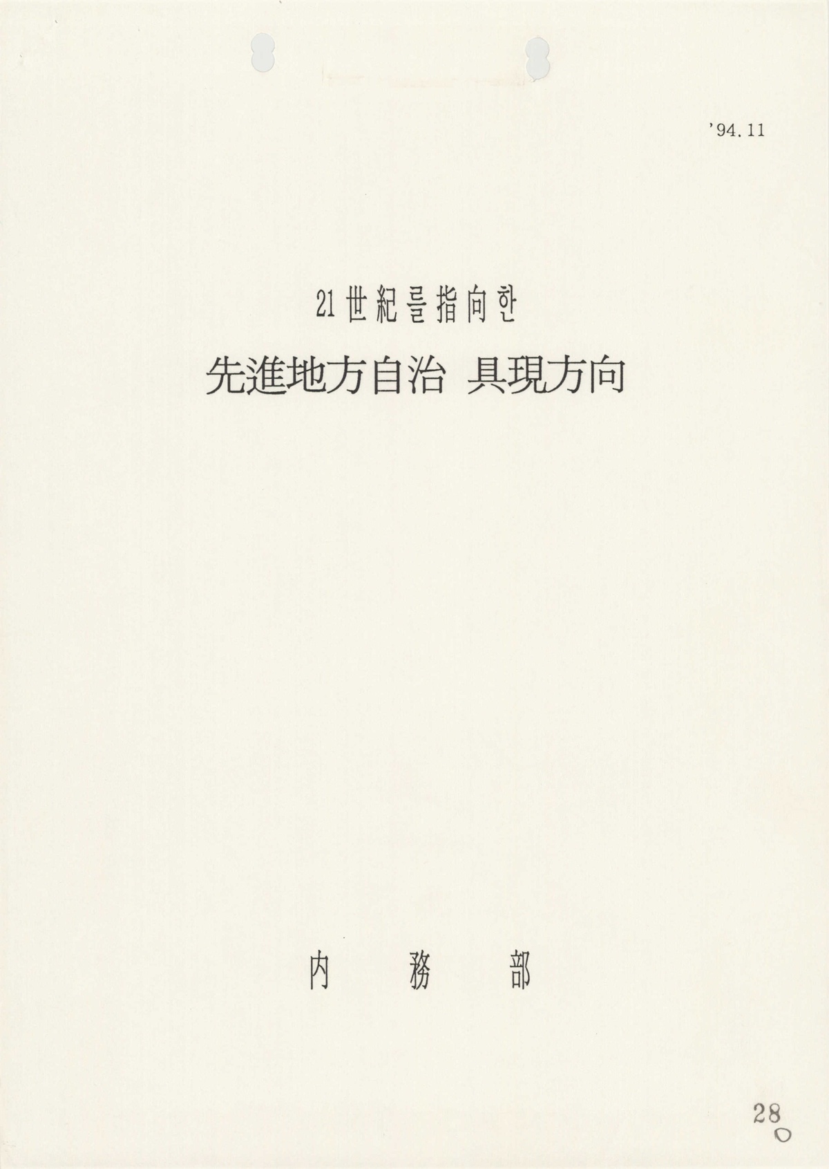 | 157 | 일반기록물 | 21세기를 지향한 선진 지방자치 구현 방향 | 행정자치부 | 1994 |