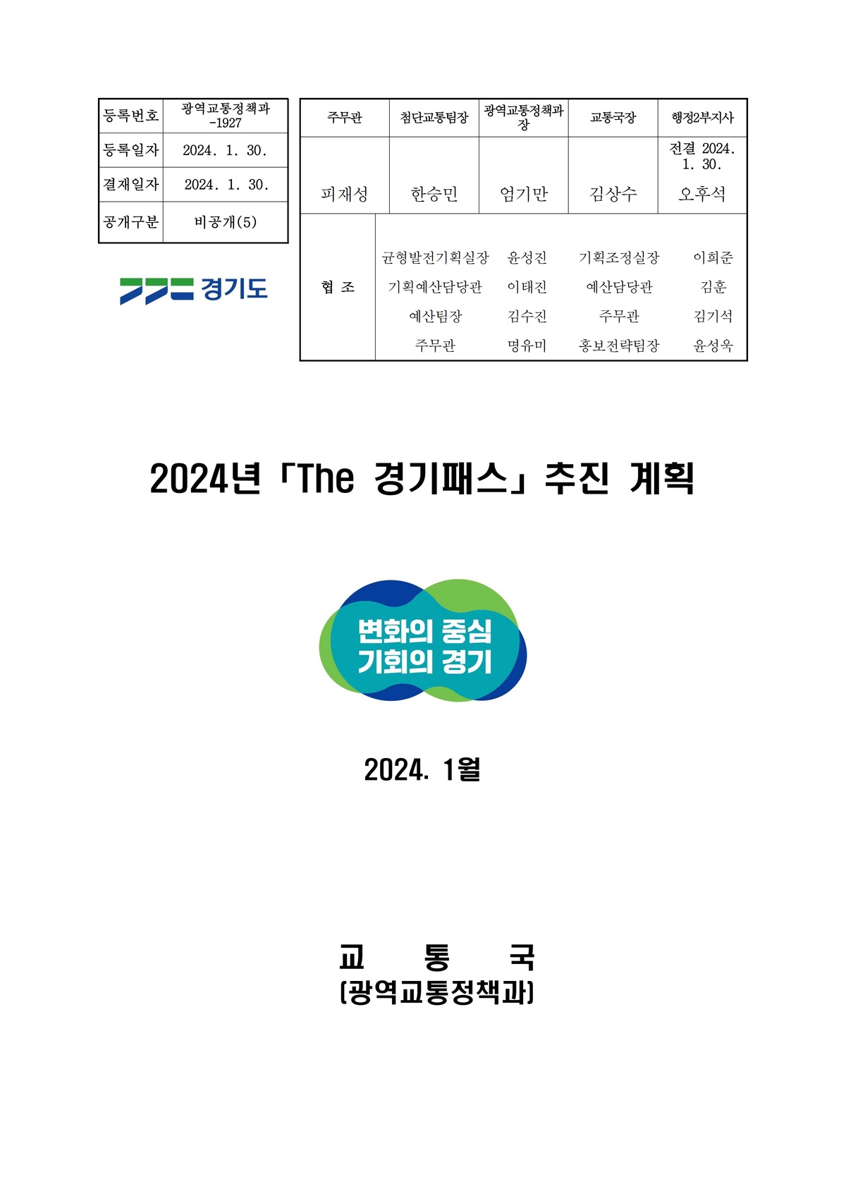 | 49 | 일반기록물 | 2024년 The 경기패스 추진계획 | 경기도 광역교통정책과 | 2024 |