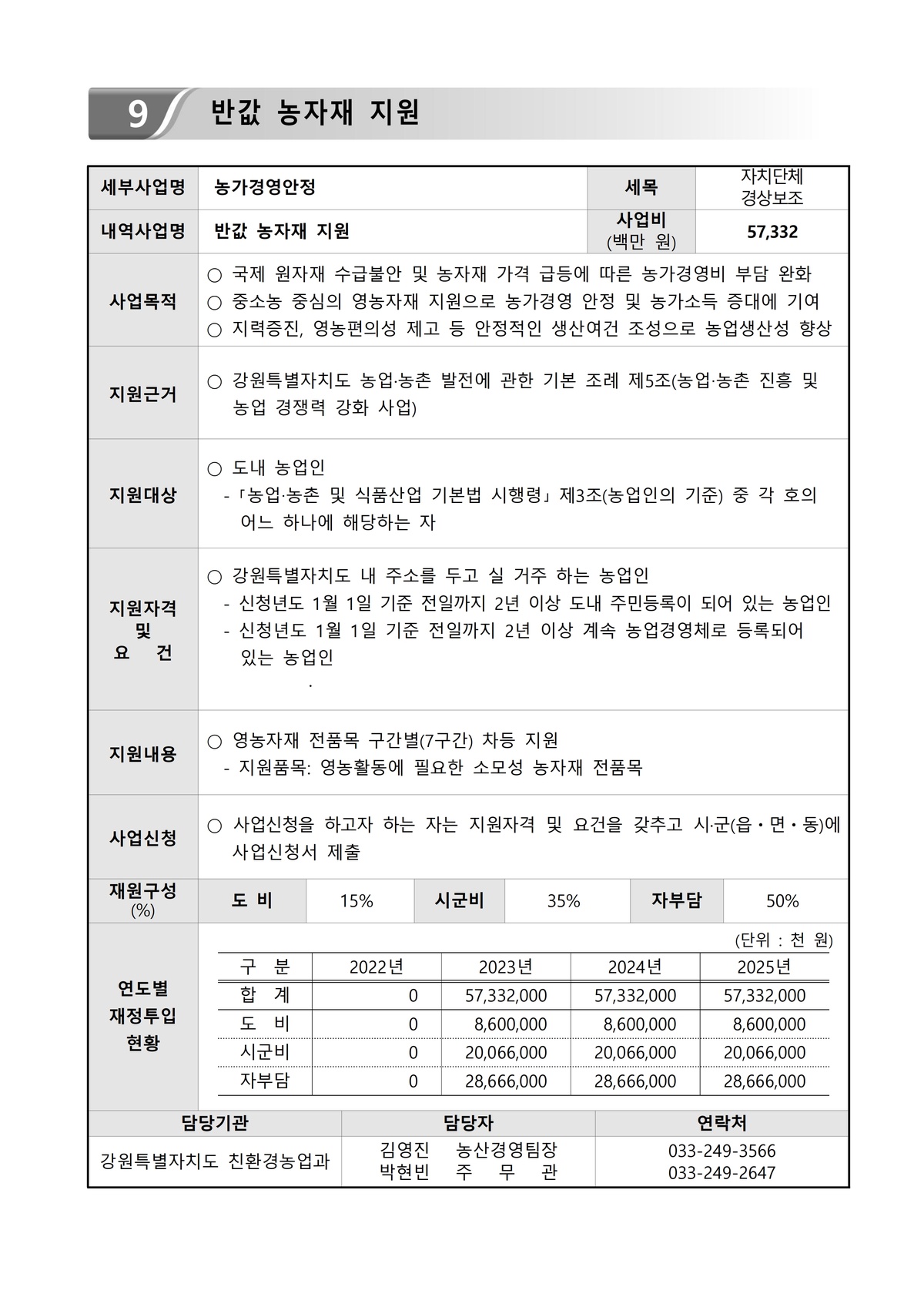 | 51 | 일반기록물 | 반값 농자재 지원사업 지침 | 강원특별자치도 | 2025 |