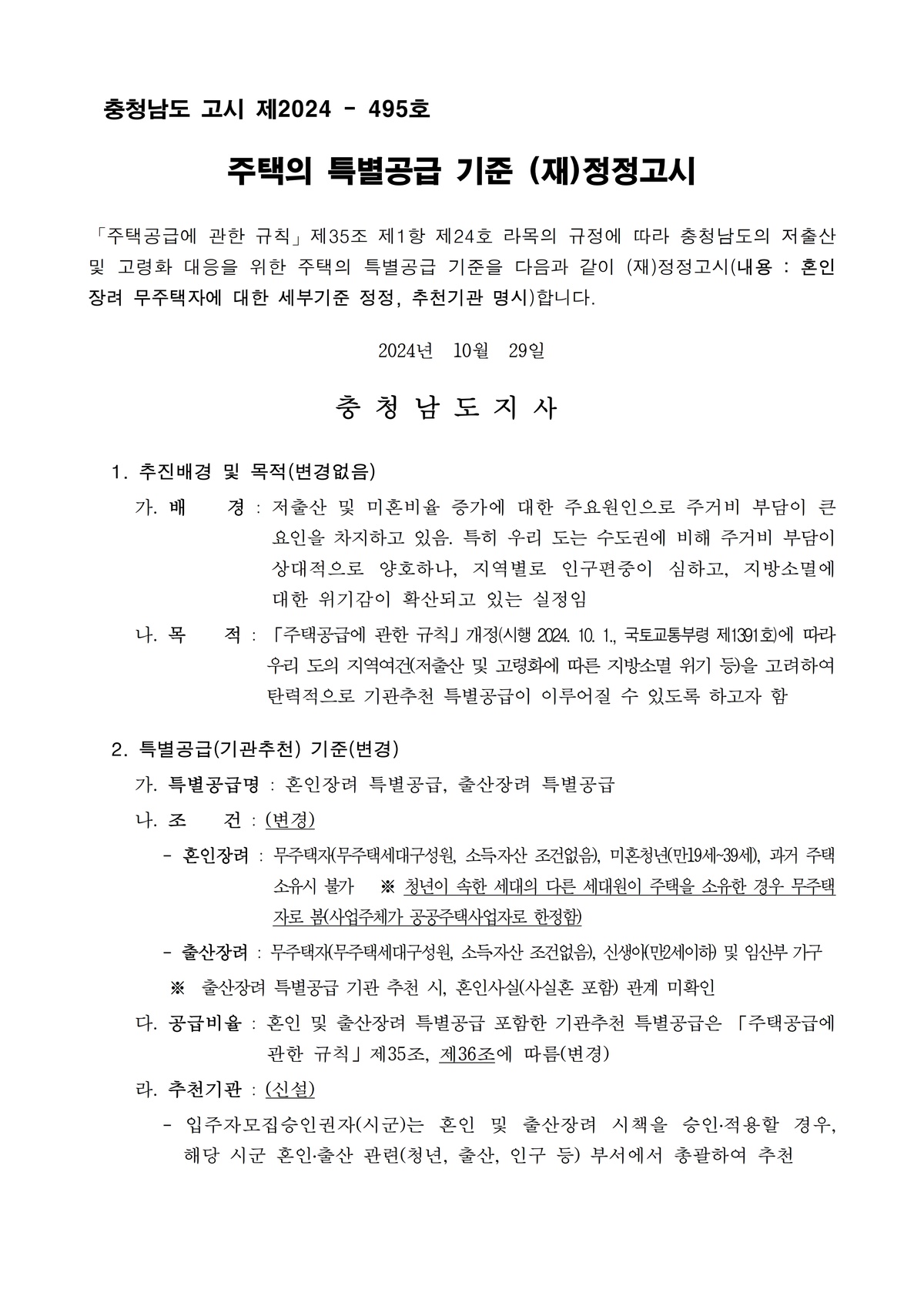 | 53 | 일반기록물 | 충청남도 주택 특별공급 기준 정정고시 | 충청남도 | 2024 |