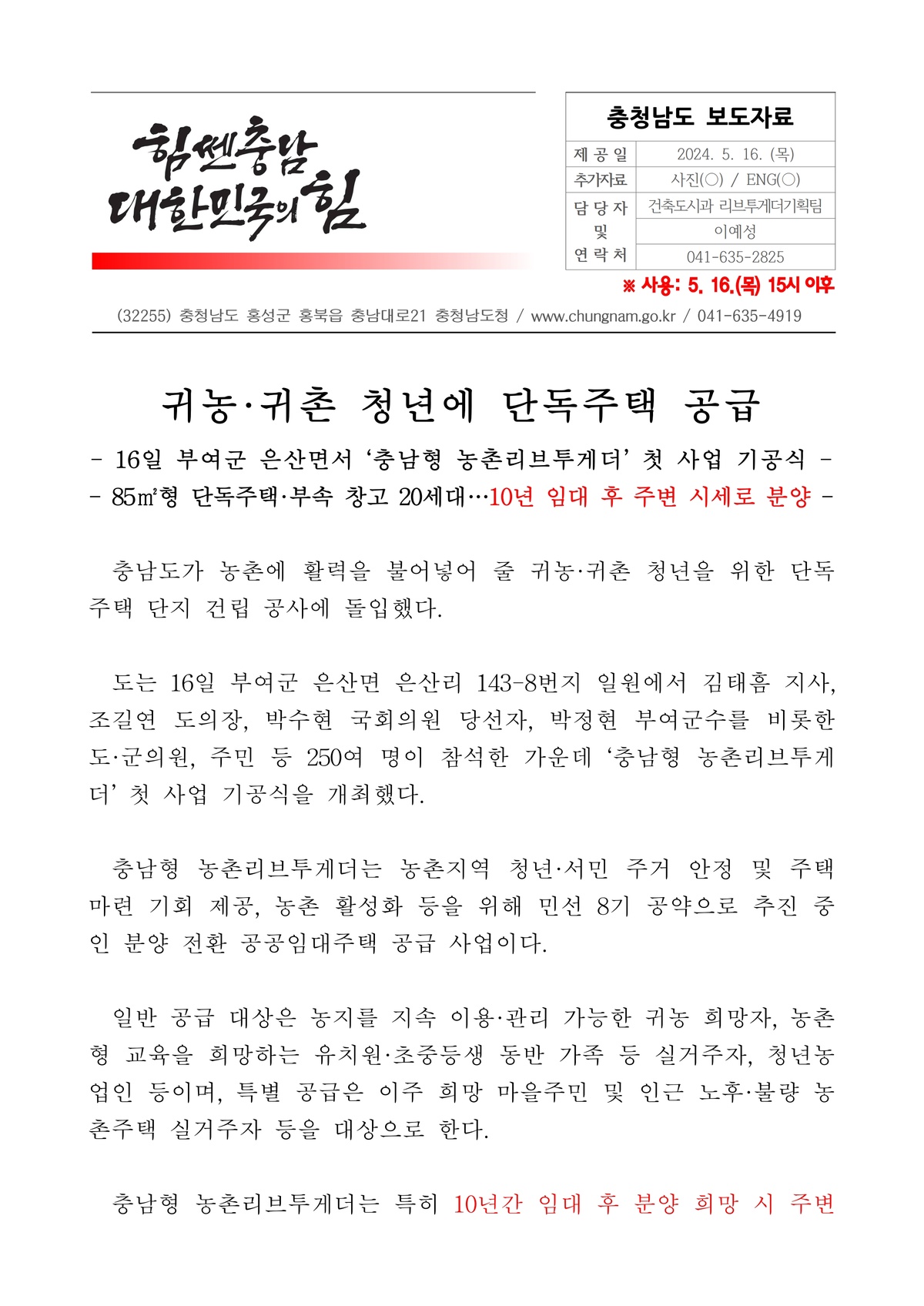 | 54 | 일반기록물 | 충남형 농촌리브투게더 첫 사업 보도자료 | 충청남도 건축도시과 | 2024 |