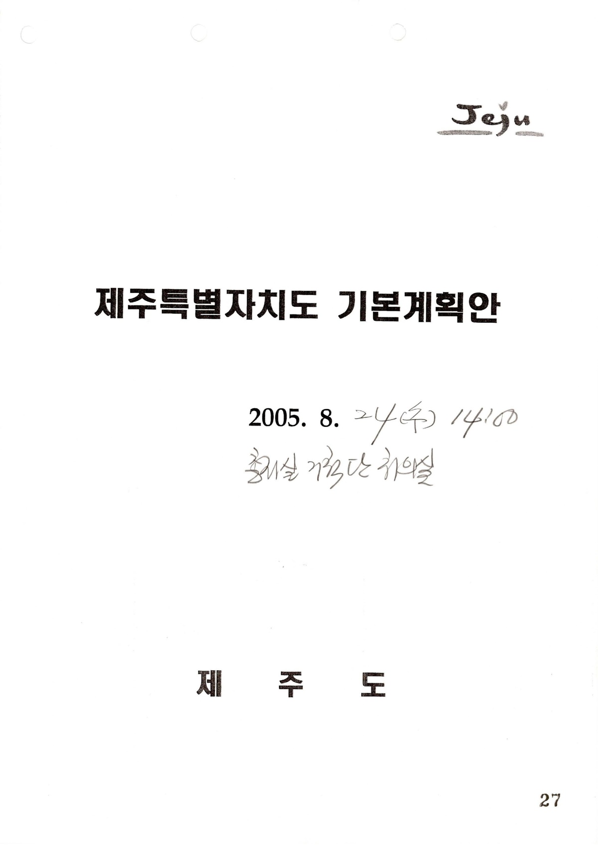 | 37 | 일반기록물 | 제주특별자치도 기본계획안 | 건설교통부 | 2005 |