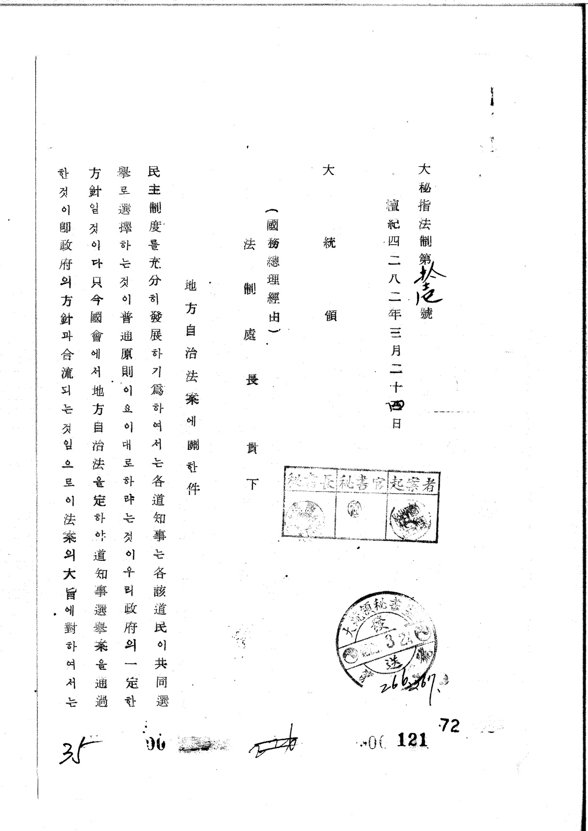 | 58 | 대통령기록물 | 지방자치법안에 관한 건 | 대통령비서실 | 1949 |