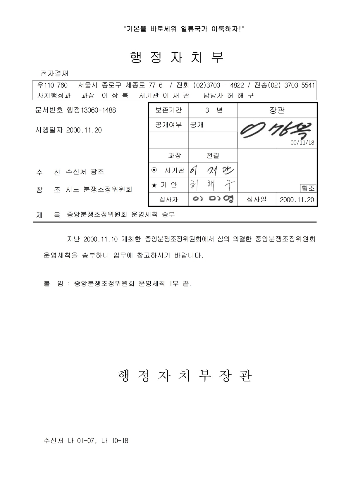 | 61 | 일반기록물 | 중앙분쟁조정위원회 운영세칙 | 행정자치부 | 2000 |