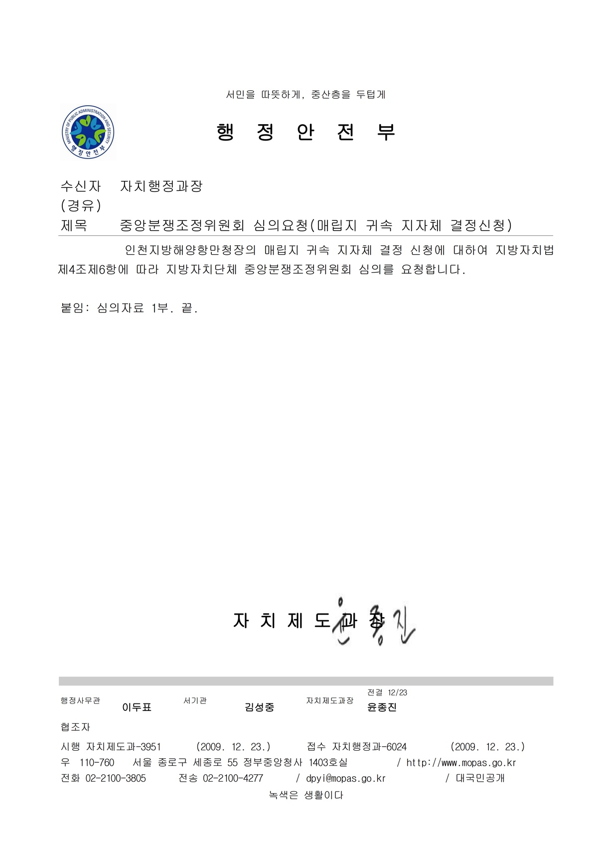 | 62 | 일반기록물 | 중앙분쟁조정위원회 심의 요청 | 행정안전부 | 2009 |